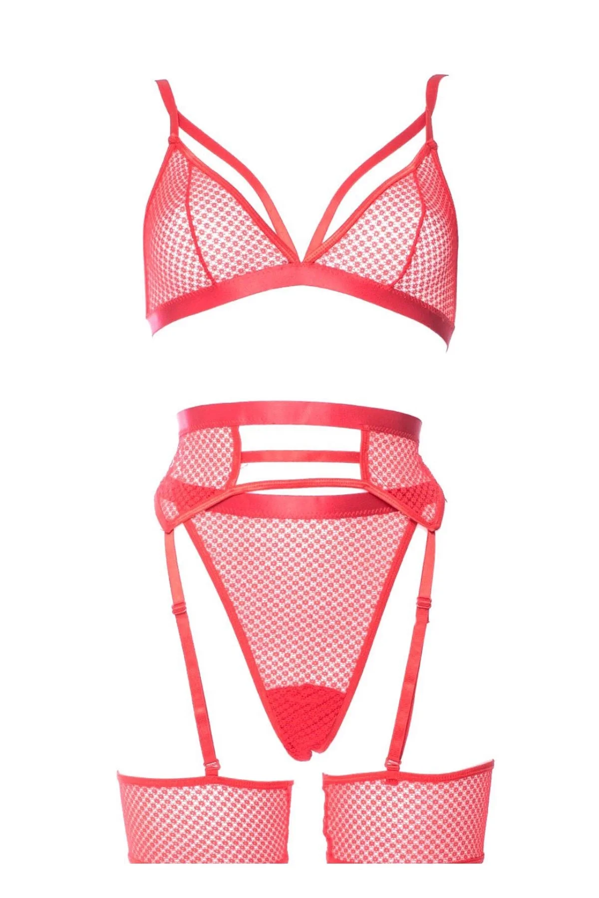 Kırmızı Fantezi File Jartiyer Takım - 1036