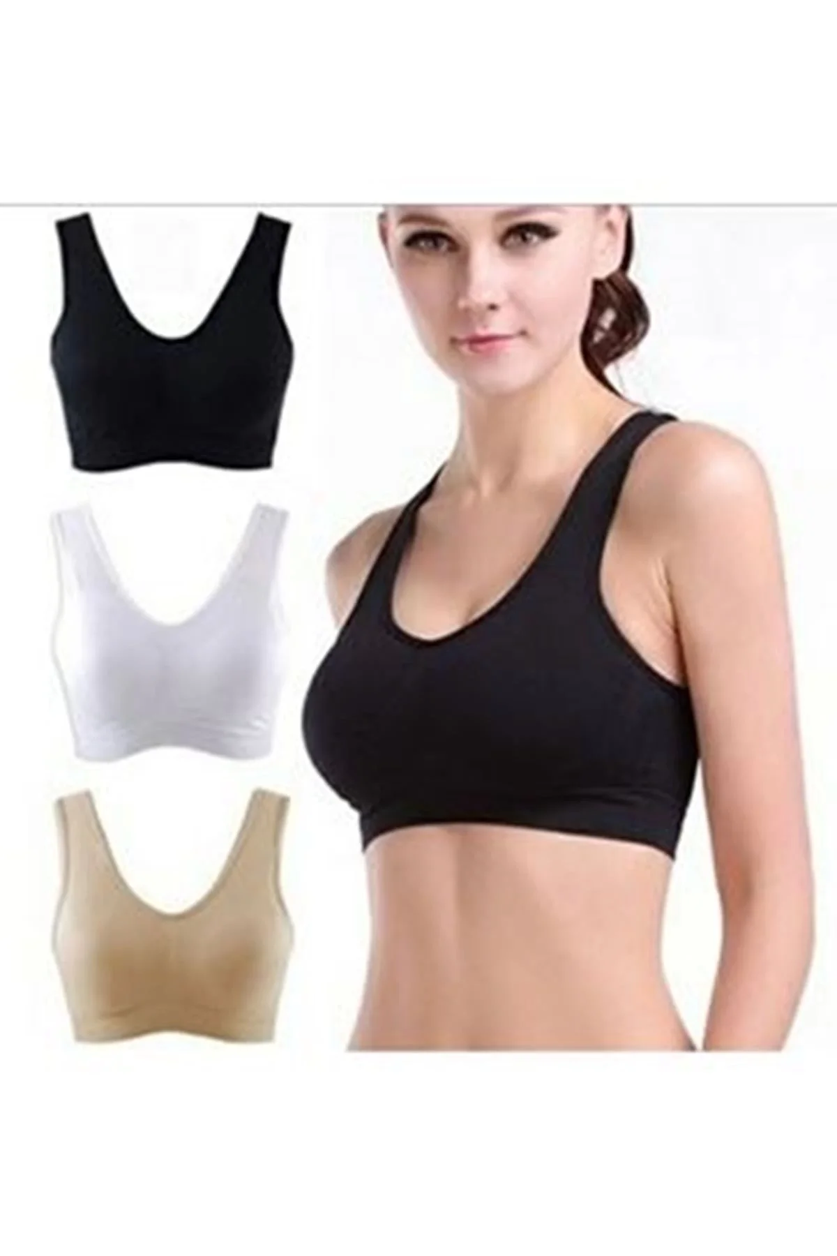 Siyah Dikişsiz Kadın Pedli Sütyen Korse - 704